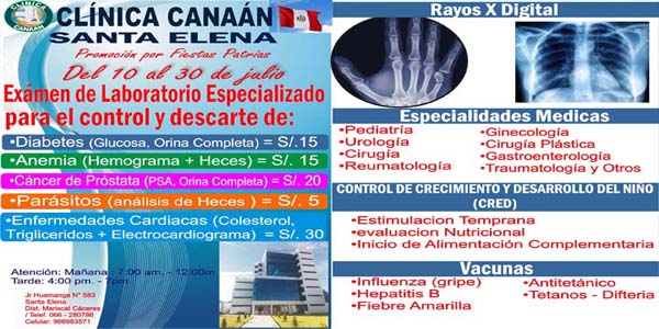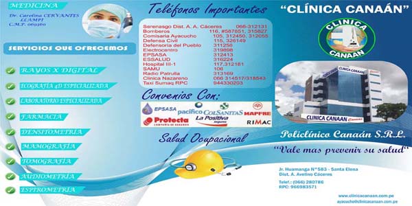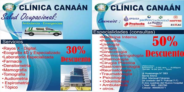 Con la inauguración del policlínico Canaan, se busca cubrir las necesidades médicas de toda la población de Canaan. Diversas especialidades médicas, con equipos de última generación y destacados profesionales de la salud, son los principales beneficios con los que cuenta a partir de ahora la población de Canaan, gracias a la puesta en marcha de un policlínico en la localidad. Es por ello que la inauguración de este Policlínico de Canaan ha sido un compromiso fundamental para la compañía y estamos seguros que el beneficio otorgado contribuirá significativamente a promover la buena salud en la localidad.